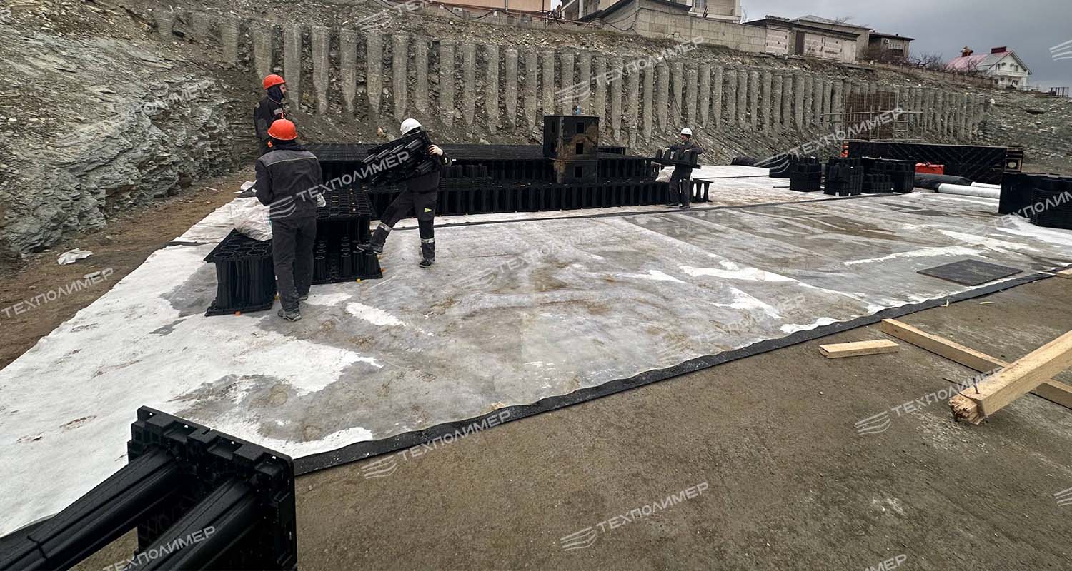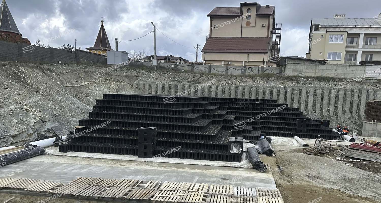Компания «ТехПолимер» продолжает реализацию проекта по устройству локальных очистных сооружений для многофункционального рекреационного комплекса «Геленджик Марина». На сегодняшний день строители выполнили важный этап: собрано уже 1300 кубических метров модульного резервуара «БлокТех», который станет основой системы сбора и очистки поверхностных стоков.