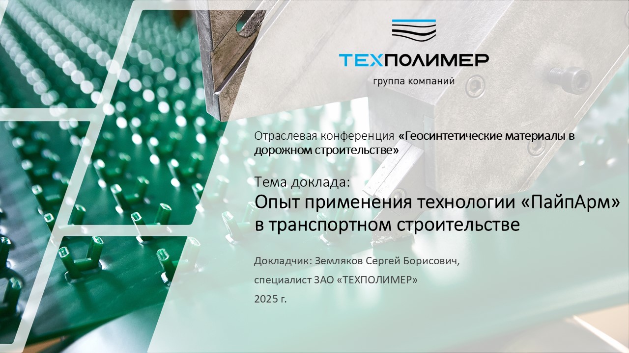 Специалист «ТехПолимер» выступит с докладом «Опыт применения технологии «ПайпАрм» в транспортном строительстве». На реальных кейсах будет представлено, как инновационные полимерные решения повышают эффективность и скорость ремонтных работ, увеличивая их долговечность. Цель доклада — расширить профессиональную дискуссию и предложить инструменты для модернизации транспортной инфраструктуры.