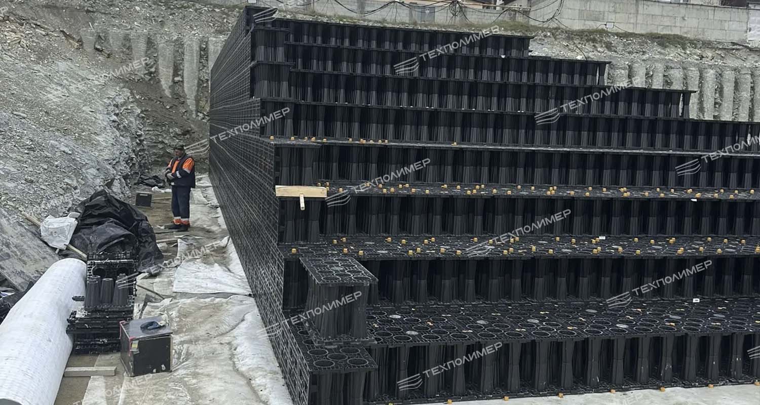 Компания «ТехПолимер» продолжает реализацию проекта по устройству локальных очистных сооружений для многофункционального рекреационного комплекса «Геленджик Марина». На сегодняшний день строители выполнили важный этап: собрано уже 1300 кубических метров модульного резервуара «БлокТех», который станет основой системы сбора и очистки поверхностных стоков.