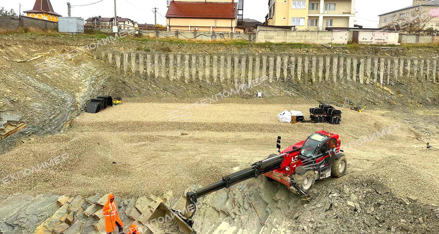 В декабре 2025 года стартовала реализация проекта по устройству локальных очистных сооружений в рамках строительства современного многофункционального рекреационного комплекса «Геленджик Марина». На первом этапе выполнены подготовительные работы, включающие планировку площадки, уплотнение и укрепление основания с использованием армированной дорожной георешётки РД, а также начата сварка полимерных смотровых колодцев.